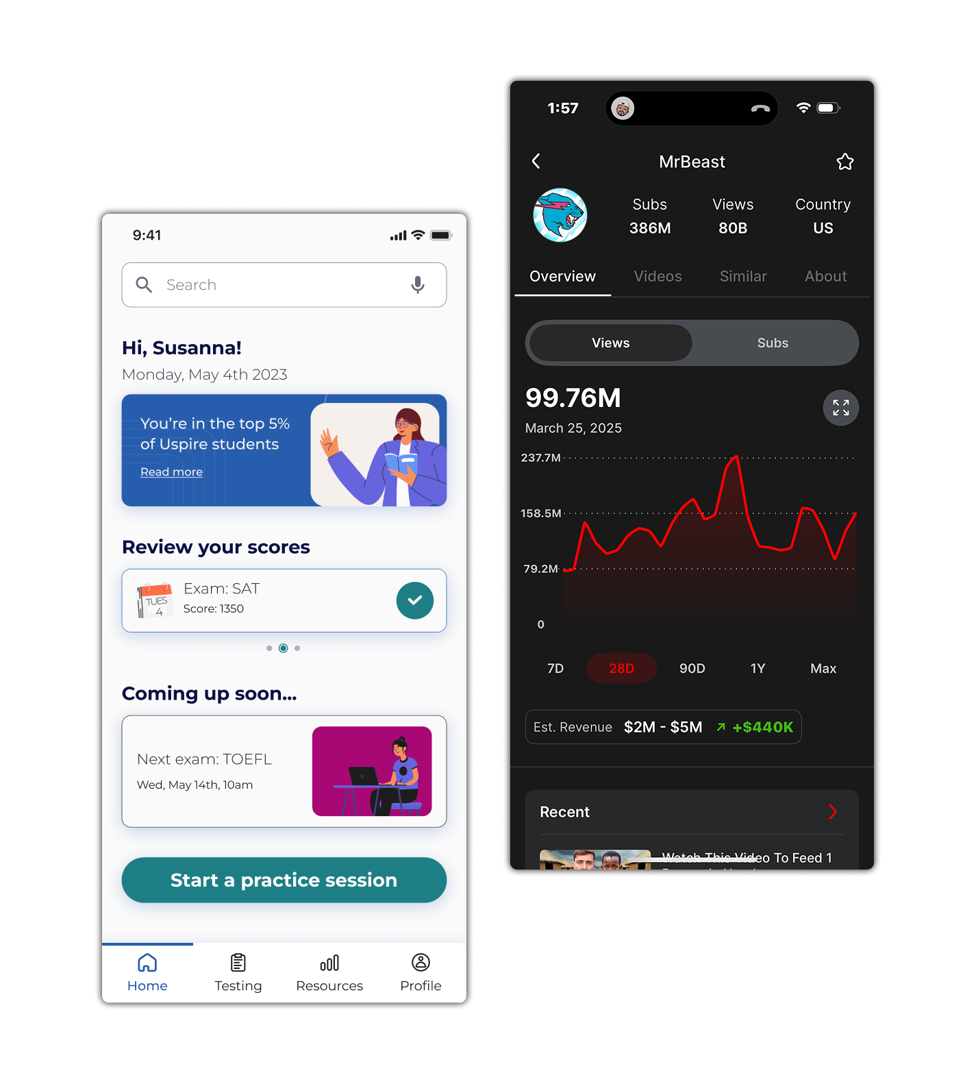 I’ve spent years building products in 0→1 chaos, including being on the founding team for MrBeast’s ViewStats, and later co-leading design at SitterCity, where I ran experiments, tested features, and helped a small team make big decisions fast. Along the way, I also earned an MBA, which helps me understand how design choices affect your product, your users, and your business, without overcomplicating things.